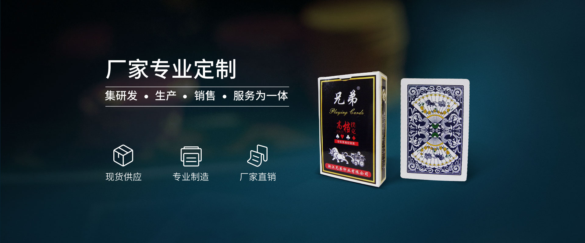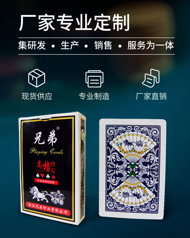 浙江兄弟印業有限公司是一家生產中、高檔娛樂撲克、禮品撲克、廣告撲克的專業撲克牌制造企業。它位于風景秀麗的“溫泉之鄉”武義縣工業區發區,金麗溫高速公路武義段出入口處。